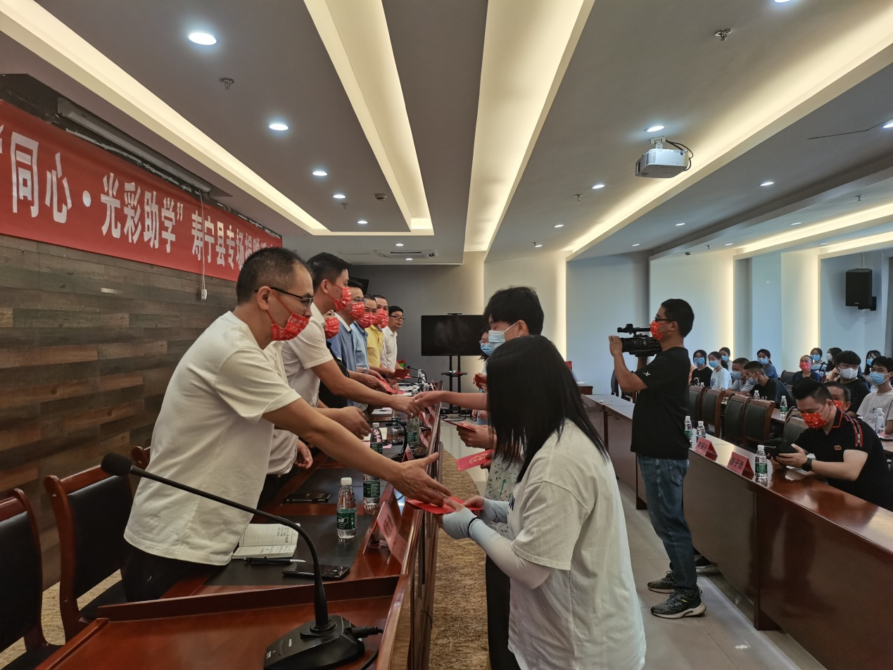 宁德文明网8月26日讯(通讯员 谢勇干)8月24日,宁德市工商联、市光彩会在寿宁县举办2022年度宁德市“同心·光彩助学”专场捐赠仪式,共资助困难家庭新入学大学生46名,每人3000元。