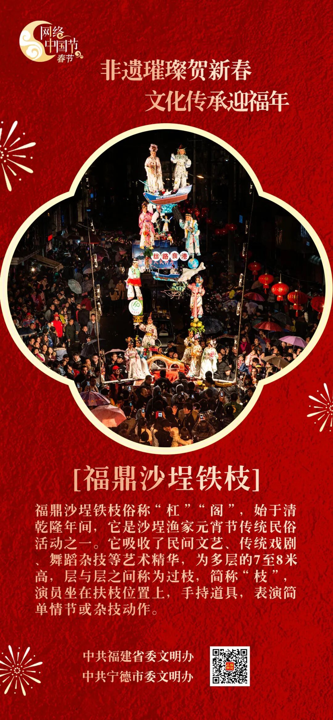 家家美灯火团圆贺新春 幸福年时和岁丰庆安康 今年是“春节—— 中国人庆祝传统新年的社会实践” 被列入联合国教科文组织 人类非物质文化遗产代表作名录的 第一个新春佳节 今天,一起走进宁德 接地气、聚人气、迎福气的非遗大餐 让人民群众过一个 有滋有味的幸福文化年