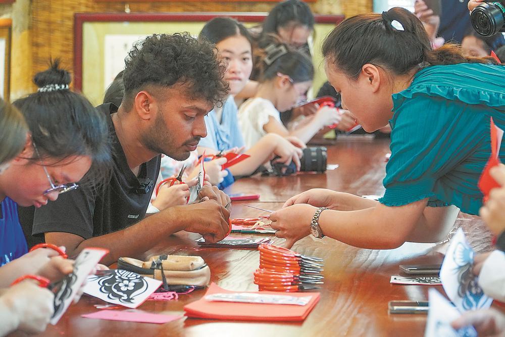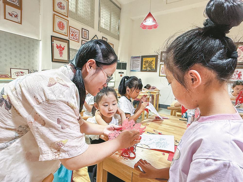一张红纸,一把剪刀,千年剪纸技艺能够跨越山海,成为沟通世界的语言。 2008年,宁德的柘荣剪纸入选国家级非物质文化遗产;2009年,作为中国剪纸代表,其被列入联合国教科文组织人类非物质文化遗产代表作名录。 近年来,“中国民间文化艺术之乡”柘荣创下多个全国之先:出台首个专为剪纸发展制定的政策文件;揭牌首个剪纸博士工作室……柘荣剪纸以其独特的地域风格和深厚的文化底蕴,正经历着一场从“活下来”到“活得好”、从“守得住”到“走得远”的深刻蜕变。 从柘荣剪纸技艺的传承创新路径可以窥见,从乡土记忆到文化名片,从家庭作坊到国际舞台,剪纸这门指尖上的艺术,正在新时代的脉搏中焕发新生。 千年技艺 传承不息 柘荣,地处闽东北,山峦叠翠,民风淳朴,剪纸早已融入百姓生活的肌理。据史料记载,柘荣剪纸可追溯至唐代,兴盛于明清,至今已有千余年历史。它源于民间节庆、婚丧嫁娶、祭祀祈福等生活场景,是老百姓用红纸写下的“无声诗篇”,寄托着对美好生活的祈愿。 袁秀莹剪纸作品《百蝶图》。 袁秀莹(右)和吴秋凤(左)探讨剪纸技艺。 推开柳城东路袁秀莹奶奶的家,满目皆是剪纸:墙上舒展着《太姥神韵》,桌上静候着《福》字,连杯垫都刻着团花纹样。 98岁的袁奶奶,出身剪纸世家,8岁执剪,旁人一句“不错”,让她这一剪就是一辈子。如今,她是国家级非遗项目代表性传承人,亦是“中华巧女”。 清茶氤氲中,聊起剪纸往事,袁奶奶眼里愈发明亮。“柘荣剪纸始于帽花、鞋花、袖口的刺绣底样,比绣好的还好看。过年、结婚时贴在窗户柜子上,红纸一贴啊,喜气就到了。”虽已眼花手颤,但那双布满岁月痕迹的手依旧稳健——剪刀轻转,一只红蝴蝶便在掌心翩然诞生。 剪纸是中国最为流行的民间艺术之一,各地风格各异。与北方一些地区,如河北蔚县,以“刻”为主的技法不同,柘荣剪纸以剪刀为主,讲究“一把剪刀、一张红纸”的纯粹技艺。“我们剪的多是花鸟山水、龙凤呈祥等源于生活的题材,寓意吉祥,技法上以阳剪为主,阴阳结合,不打初稿,直接就剪,一气呵成。”她道出柘荣剪纸的精髓。与漳浦剪纸等幅面饱满不同,柘荣剪纸布局写意,“意在剪先”,更具灵动性和即兴的神韵,既显粗犷豪放,又蕴藏南方灵秀。 2008年,柘荣剪纸入选国家级非遗;2009年,作为中国剪纸代表,被列入联合国教科文组织人类非物质文化遗产代表作名录。 然而,随着现代化进程的加快,剪纸的实用功能逐渐弱化,传承面临断代危机。“剪纸不能只活在展馆里,更不能只留在老人的记忆中。”柘荣县文化馆馆长黄建辉说。 破局之道,在于“活起来”。2022年,《关于实施柘荣剪纸创造性转化和创新性发展工程的意见》出台——这是全国首个专为剪纸技艺发展量身打造的系统性政策文件,标志着柘荣剪纸进入全面保护与创新发展并重的新阶段。 其中,“剪纸六进”成为关键抓手:进校园、进乡村、进社区、进机关、进景区、进网络。今年5月,县机关幼儿园挂牌“剪纸传承基地”,成为这项非遗项目最年轻的传承阵地。“种下一颗火种,将来必成燎原之势。”黄建辉满怀期待。 在柘荣县青少年学生校外活动中心内,打开“剪纸AI传承人”小程序,输入“生肖兔”三个字,屏幕瞬间生成底图,孩子们屏息凝神,指尖翻飞间,红纸片片纷落,一只只活灵活现的兔子跃然纸上……千年剪纸技艺正以这般新潮的方式在孩子们的心中扎根。 如今,每到暑假和周末,柘荣县文化馆的剪纸公益课期期爆满。只见教室墙上贴满孩子们的稚嫩又充满灵气的作品,市级非遗代表性传承人陈水云正在指导8岁的陈奕诺剪红喜字。小奕诺学了两周,已能剪出带小鸟和花朵图案的喜字。“我喜欢剪纸,像会魔术!”她举着作品,笑容灿烂。 柘荣剪纸协会会长金素清介绍道:“现在不只是‘六进’,我们还组织进军营、进企业等,由传承人现场手把手教学,每次活动都非常受欢迎,全县学习剪纸、传承剪纸的氛围浓厚。” 传统上,柘荣剪纸依靠“口传心授”的师徒模式传承。如今,政府和民间组织共同搭建了剪纸传习所、技能大师工作室等平台,实施“导师帮带”制度,由袁秀莹、孔春霞等大师定期授课,系统化培养新人,形成了“老一辈大师引领、中生代骨干支撑、青年力量创新”的代际传承格局。 以陈水云等“90后”传承人为代表的年轻一代,不仅继承了传统技艺,更将现代审美融入创作。她们学习动漫、油画、装饰画等艺术形式,创作出《闽福》等兼具传统韵味与现代设计感的作品,让剪纸“潮”起来,吸引了更多年轻人关注。 一纸兴村 博士入乡 驱车从柘荣县城出发,不到15分钟,一把巨型剪刀雕塑赫然立于岩石之上,红底白字写着“靴岭尾”。走进这个曾经默默无闻的村子,仿佛步入露天剪纸艺术馆:民居外墙上是巨型剪纸图案,路边灯箱采用镂空剪纸设计,剪纸体验馆内,游客聚精会神剪刻。 “八姐妹”共同创作剪纸作品。 非遗代表性传承人陈水云(左一)指导学生练习剪纸。 5年前,靴岭尾村还是一个“支部弱、‘村财’少、群众散”的软弱涣散村,村集体收入仅有7.32万元。如今,它已蜕变为剪纸产业标杆,获评“中国美丽休闲乡村”和“省级乡村振兴示范村”,村集体收入达98.97万元,村民年人均可支配收入3.18万元。这一切,始于一把剪刀、一张红纸。 “我们立足400多年剪纸底蕴,把非遗变成村庄核心符