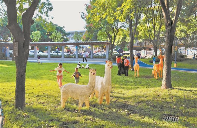 公园为群众提供休闲好去处。李郁 摄 8个专业运动场地、智能健身驿站、智慧步道,福安市智慧体育公园内,智能设备加持,群众健身数据一键获取,每天吸引超千名群众参与。将公园融入体育场地,在公园增设健身设备,福安市全力打造“休闲+体育”新模式,织密15分钟健身网络。