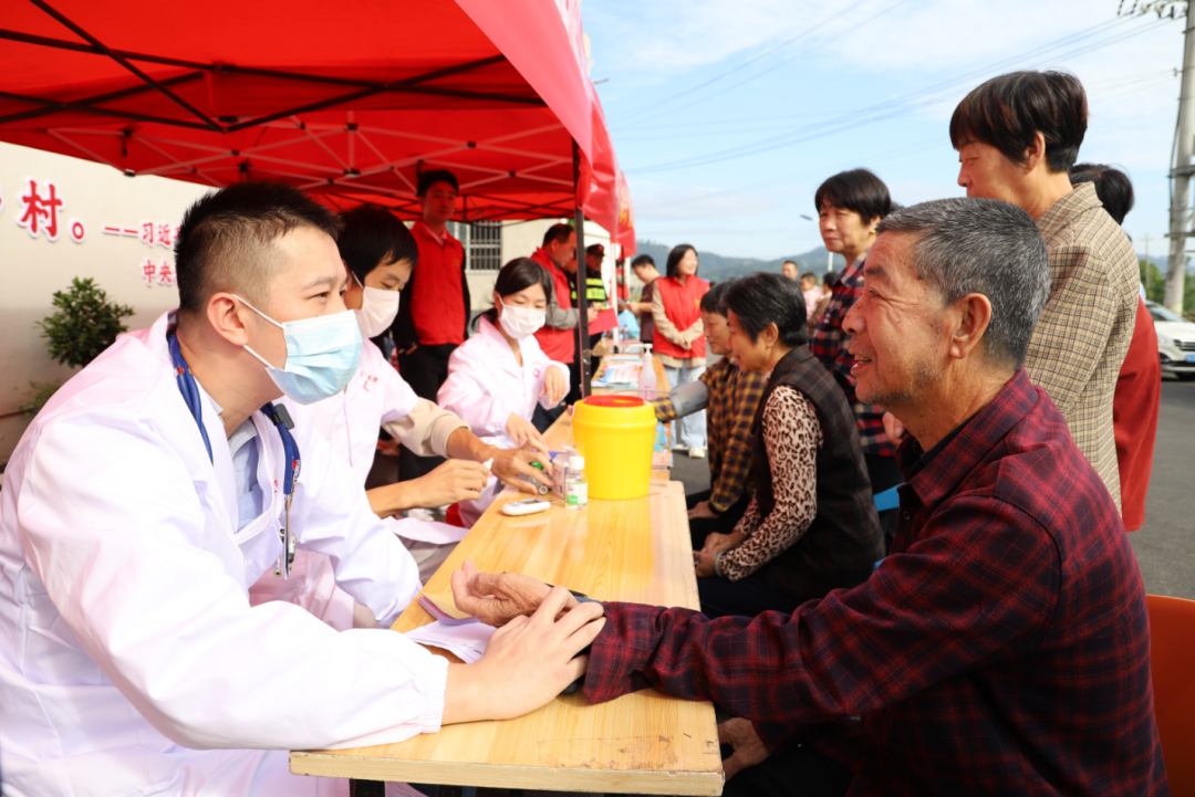 活动现场,志愿者井然有序地为村里老年人提供集中志愿服务。健康义诊区域,医疗人员们细致地为老年人和慢性病患者测量血压、血糖,耐心解答他们关于血压、血糖控制的疑问,并给予专业的饮食、运动建议。中医专家则专注地为村民们把脉会诊,通过传统中医的智慧,为大家提供个性化的中医调理方案。医护人员还向村民们进行了全面的健康宣教,从日常保健知识到疾病预防要点,用通俗易懂的语言讲解,帮助大家提升健康意识。