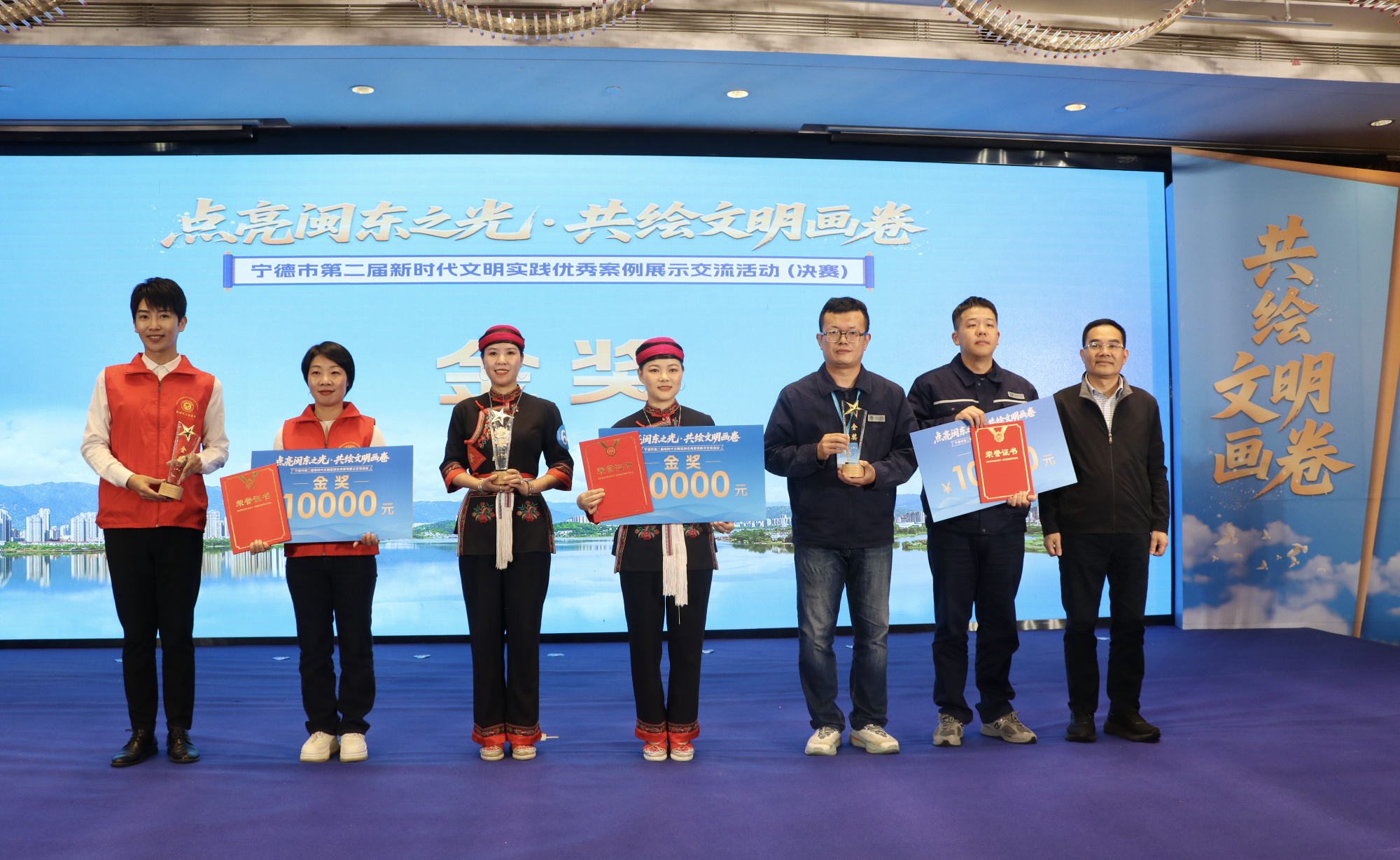 各地入围案例代表进行现场展示。 活动以点亮闽东之光 共绘文明画卷”为主题,设置案例展示、现场评分、颁奖授誉等环节。决赛现场,各地入围案例代表通过PPT演示、现场展示、情景演绎等多种形式,生动呈现案例的实施背景、创新做法、社会成效及下一步计划。上台展示的案例紧扣群众需求、扎根基层实际,既有理论高度,又充满民生温度,充分展现了宁德市新时代文明实践工作的活力与成效。专家评委从案例成效、社会影响、展演表现等维度进行综合评分。 经过激烈角逐,“政企融合,电靓民宿”志愿服务模式、猴盾“山哈新声”宣讲志愿服务项目、宁爱行动——“异类天才”院后关爱志愿服务项目脱颖而出,斩获金奖。大赛还评选出银奖6个、铜奖9个、优秀奖28个,另设网络人气奖3个及优秀组织奖1个。赛后,组委会还将制作宁德市第二届新时代文明实践优秀案例展示交流活动风采集锦宣传册,在全市范围内推广典型经验。 本次大赛历时三个多月,共收到申报案例153个。经专家初审和公示,46个优秀案例脱颖而出晋级决赛。这些案例来源于基层、植根于实践,涵盖特色活动、制度设计、队伍建设、资源整合等多个方面,生动展现了宁德市新时代文明实践中心建设的创新活力与丰硕成果。 “此次文明实践优秀案例展示活动服务人群广、覆盖领域宽、参与群体多,生动展现了宁德市新时代文明实践工作以文化人、成风化俗的鲜明导向与扎实成效。”中国农业大学马克思主义学院教授、北京市思想政治理论课特级教授张晓红作为评委之一对赛事给予充分肯定。