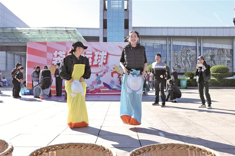 职工参加袋鼠运球趣味游戏。 活动以“趣味游戏+知识科普”为核心,设置了“两人三足”“摸石过河”“你比我猜”“欢乐沙包”“袋鼠运球”等5项趣味项目,通过垃圾分类知识问答和竞技环节累积印章的方式,让参赛者在协作比拼中强化分类认知。现场还设置了灯谜专区,灯谜内容涵盖垃圾分类标准、政策法规等知识,以寓教于乐的形式吸引职工踊跃竞猜,进一步巩固学习成效。 活动现场气氛热烈,各代表队队员默契配合、踊跃答题,充分展现了东侨干部职工良好的精神风貌与团队协作精神。 本次活动不仅生动传递了“垃圾分类、人人有责”的环保理念,更营造了“共建美丽城市、共享绿色未来”的浓厚氛围。东侨开发区将以此次活动为新的起点,持续推动垃圾分类工作走深走实,让绿色低碳的生活方式融入更多干部职工的日常行动,为建设美丽东侨注入源源不断的“绿色动能”。 |