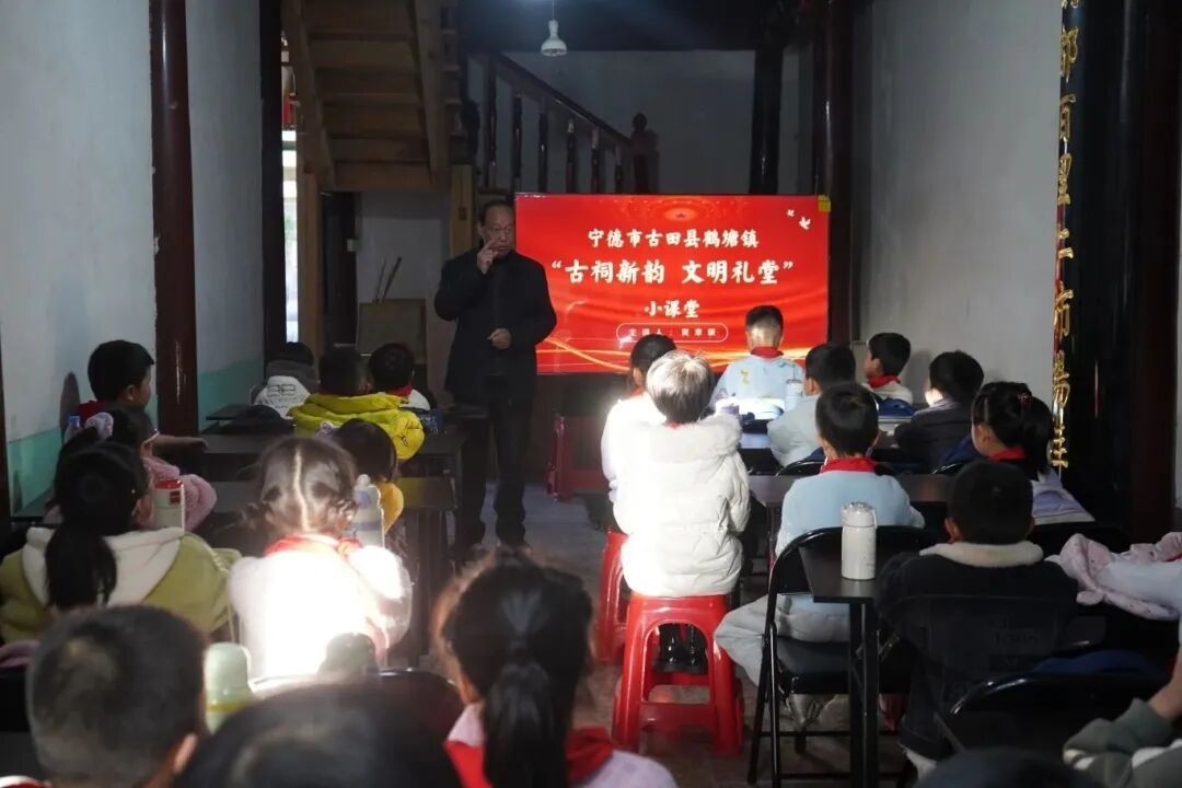 古田县鹤塘镇黄氏宗祠开展“追寻红色印记,传承革命精神”主题活动。 宁德市始终坚守“保护优先、合理利用”的原则,将古祠活化纳入乡村振兴战略规划与公共文化服务体系建设全局,组织专门力量对全市宗祠开展全覆盖摸排,建立动态更新的宗祠台账底册。围绕“历史底蕴深厚、活动条件完备、人员维护到位、展厅分区科学、资源整合高效”的核心标准,通过功能重构与设施升级,让老祠堂成为承载群众精神文化需求、传承红色基因的核心阵地,助力打造“15分钟文明实践圈”。 在福安市溪柄镇立峰村,曾见证闽东革命烽火的马氏宗祠,如今成为红色基因传承与群众精神文化生活融合发展的典范。乡村大舞台上,红色歌曲与“村晚”节目轮番登场;电影幕布前,老党员为青少年讲述马立峰等先辈的战斗故事,让红色记忆在代际传递中愈发鲜明。这里既保留正月祭祀、戏曲演出的传统民俗,维系乡土情感纽带,又常态化开展红色研学活动,老人在此闲话家常、青少年在此汲取红色力量,古祠真正成为党员群众追忆初心、村民共享文化盛宴的“精神驿站”。 霞浦县松港街道赤岸村的林氏史迹纪念堂,打破传统宗祠祭祀的单一属性,成功转型为兼具文化传承与文明引领功能的“文明礼堂”。重阳佳节,这里暖意融融,孩童身着传统服饰表演《中华孝道》,稚嫩歌声传递敬老美德;腰鼓队的表演者舞步飞扬,鼓点铿锵诠释村民向上风貌。平日里,政策宣讲、非遗传承活动持续开展,红色故事分享会让爱国精神深深扎根。老祠堂实现从“宗族专属”到“全民共享”的质变,成为滋养群众精神世界、传递红色正能量的重要载体,为基层精神文明建设筑牢根基。 依托老祠堂这一核心枢纽,宁德市进一步整合乡村舞台、农家书屋等公共文化资源,形成“一祠辐射、多点联动”的文化服务网络。如今,在这些古祠里,“小板凳”“霞小宣”等特色宣讲队用乡音解读党的二十届四中全会精神与乡村振兴政策,红色电影循环播放唤醒集体记忆,老年人在配套的孝老食堂享受暖心服务,青少年参与传统文化研学实践,真正实现“旧场所”的“新赋能”,让古祠成为服务群众、凝聚民心的“幸福驿站”。 移风易俗 古祠引领的基层善治 涵养文明乡风新格局