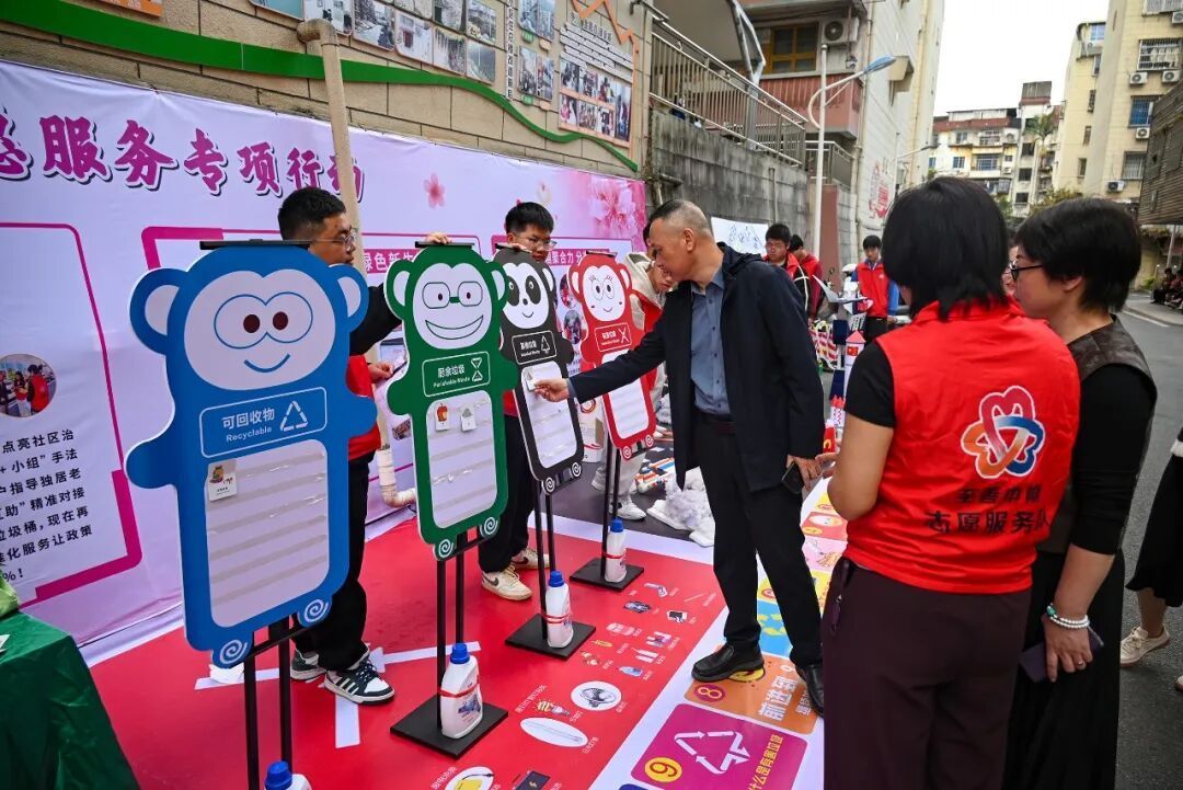 现场设置五大互动板块,将垃圾分类知识融入趣味游戏。废物制作科技展区内,亲子手工作品让人眼前一亮,孩子们用废旧纸箱、塑料瓶制作的小机器人、花瓶等创意作品吸引居民驻足,还有垃圾卡片分类挑战、幸运大转盘问答、分类标识套圈等游戏,让大家在轻松玩乐中熟练掌握分类技能。一位参与活动的家长表示:“孩子边玩边学,还主动教我分类,这样的活动比单纯说教有效多了!” 活动还设置文艺汇演环节,以乐器联奏《我的祖国》、诗朗诵《巾帼颂・环保情》、情景剧《社区里的“分”享时刻》等节目传递环保理念。活动特别设置表彰环节,为“垃圾分类示范家庭”“巾帼环保先锋”及“优秀志愿者”颁发证书,通过榜样力量激发更多居民参与热情。