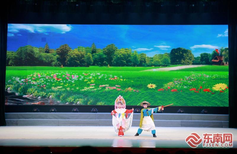 文艺汇演现场。吴圣锦 摄 演出在《秦风戏韵》中拉开序幕,为整场演出奠定了厚重典雅的基调。随后,《小放牛》《天女散花》《挂画》等经典折子戏轮番登场,寿宁县实验小学的学生们与寿宁县北路戏保护传承中心专业演员联袂献演,稚嫩却不失韵味的唱腔、灵动鲜活的表演,将传统戏曲的独特魅力展现得淋漓尽致,赢得台下观众阵阵掌声。