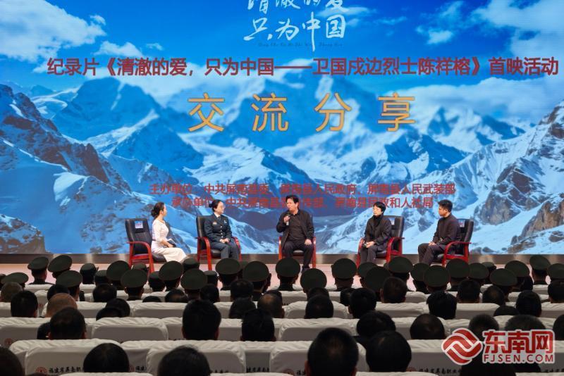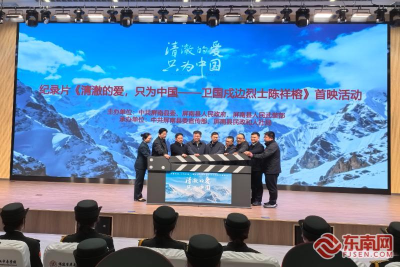 纪录片首映发布仪式。东南网记者 叶伏国 摄 纪录片以陈祥榕的人生轨迹为核心脉络,通过情景再现、采访纪实、旁白解说等形式讲述戍边烈士陈祥榕的成长故事,深度挖掘他从屏南红色沃土走出的成长历程,诠释“清澈的爱,只为中国”的精神内核。 “‘清澈的爱,只为中国’,是陈祥榕烈士用19岁生命践行的青春誓言,更是穿越时空、直抵人心的深情告白。”屏南县委书记周春海在首映仪式致辞时动情地说,今天我们这部纪录片首映,既是对烈士光辉一生的深情回望,更是对“清澈的爱”这一精神丰碑的立体诠释。
