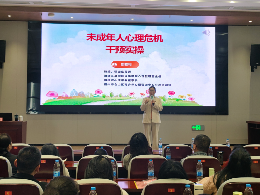 与连榕教授的理论授课形成互补,福建江夏学院邵雅利教授聚焦《未成年人心理危机干预实操》,通过典型案例剖析、情景模拟演练及互动研讨等形式,细致讲解心理危机的识别评估、干预流程及沟通技巧,助力学员切实提升应对实际危机的处置能力。