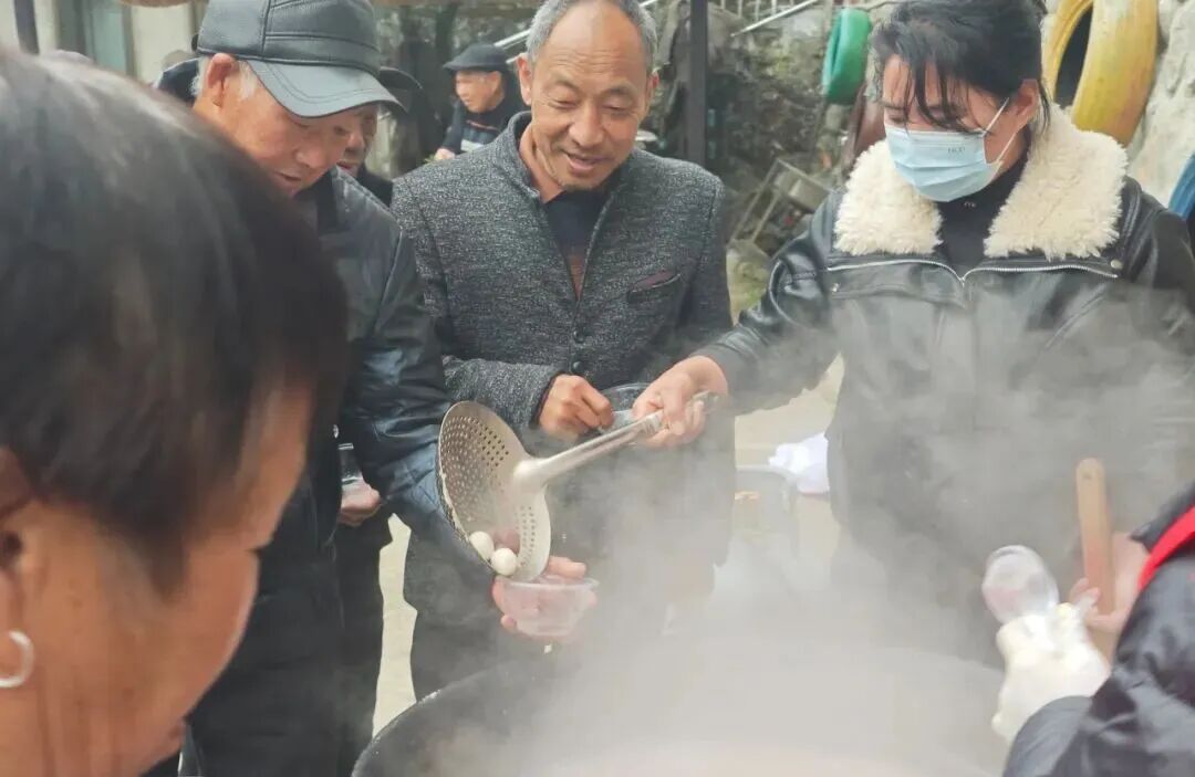 在南溪村李氏祠堂内,“古祠新韵 文明礼堂——南溪邻里聚祠堂,冬至糍粑敬乡老”主题活动温情启幕。巾帼姐姐队负责采买食材与制作糍粑,党员先锋队轮番舂打糯米,银发贡献队共邀老年乡亲齐聚,行动不便的长者还收到了志愿者上门送的糍粑,民俗盛宴中同步开展的安全知识宣传,更让节日增添了文明底色。 在溪底村村播小院里,平溪镇主播与巾帼志愿队分工协作、默契配合,忙着包起高粱、糯米双味馅料的汤圆。孩子们围在灶台边,踮着脚尖认真模仿体验,欢声笑语洒满整个小院。“用做自媒体赚的钱,请大家吃汤圆,特别有意义!”村主播朴实的话语,道出了这场邻里团圆宴的暖心初衷。村女主播与村民友灿的热心赞助,更让这份冬日里的暖意加倍升温。