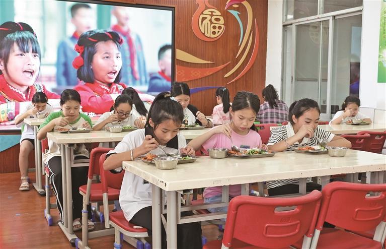 得益于“368惠生工程”,学生在校园内吃上可口饭菜。 2025年11月18日,“福安市实验小学滨海校区”挂牌仪式在福安市湾坞中心小学举行;同年12月10日,福安市实验小学坂中校区揭牌成立。标志着福安市实验小学教育集团“总校制”办学改革向基层延伸。 “教育集团化打通了师资流动通道,让我们更顺畅地将优质资源和先进经验分阶段送到共同体学校。”福安市实小富阳校区党支部书记、校长陈丽介绍,共同体学校通过微型讲座、课堂互动、“互联网+”备课等方式,集思广益,让老师的专业素养在一次次研课磨课中获得成长。 教育关系着一个家庭的流动,让学生在家门口上好学,是许多家长的期盼。除了教育集团管理模式,福安还探索打造小学“两轴三级四提升”城乡教育共同体新架构,以教育行政与教科研部门“两轴”发力,城区优质学校、乡镇中心校和乡村完小校“三级”结盟共建,促进城乡教育共同提质。 2022年,福安市实验小学富阳校区与福安市湾坞中心小学结对,一场囊括课程、教研、资源、实践的联动由此开启。三年多来,富阳校区骨干教师们沉到湾坞中心小学,通过一次次座谈、听课、教研,为当地培养了一支“带不走”的师资队伍。在湾坞中心小学党支部书记、校长黄文锋看来,帮扶结对不仅是资源“输血”,更是提高湾坞中心小学“造血”能力,“从‘单打独斗’到‘团队作战’,结对相当于把名师请到了家门口,让我们共享优质课程与活动资源,提高本地教师水平。” “十四五”期间,福安共组织11所城区优质牵头校,与23所乡镇中心校和16所农村完小校形成城乡教育共同体,推动优质教育资源向乡村学校流动。资源下沉,乡村学校综合素质不断提升,教师专业能力持续提高,城乡教育质量差距在一步步缩小。一组数据可以窥见:打造五育融合教育样板校3所、校本研训样板校9所、科学教育示范校9所;近三年,8位教师课例获评“部级精品课”、26位教师课例获评“省级精品课”,乡村教师参加省市级教学赛事获奖率从不足5%提高至20%以上。 优质教学资源不止于线下流动,福安以“互联网+”为主线,创生智慧教育新模式,引进“情系远山——专递课堂”项目,开设“情系远山”英语、艺术、创客三类专递课堂,改善部分学校薄弱学科师资问题,促进教学质量提升。 传承文化 活力在校园里流淌 立竿、上脚、起走……踩着两根细竹,学生们握紧竹竿,快步跑起来,这是发生在宁德市民族中学“高脚竞速”校本课课堂上的一幕。 据了解,高脚竞速原名“高脚马”“骑竹马”,源于苗族、土家族等群众涉水过河、打捞鱼虾时的工具,后来逐渐发展为民族传统体育项目。