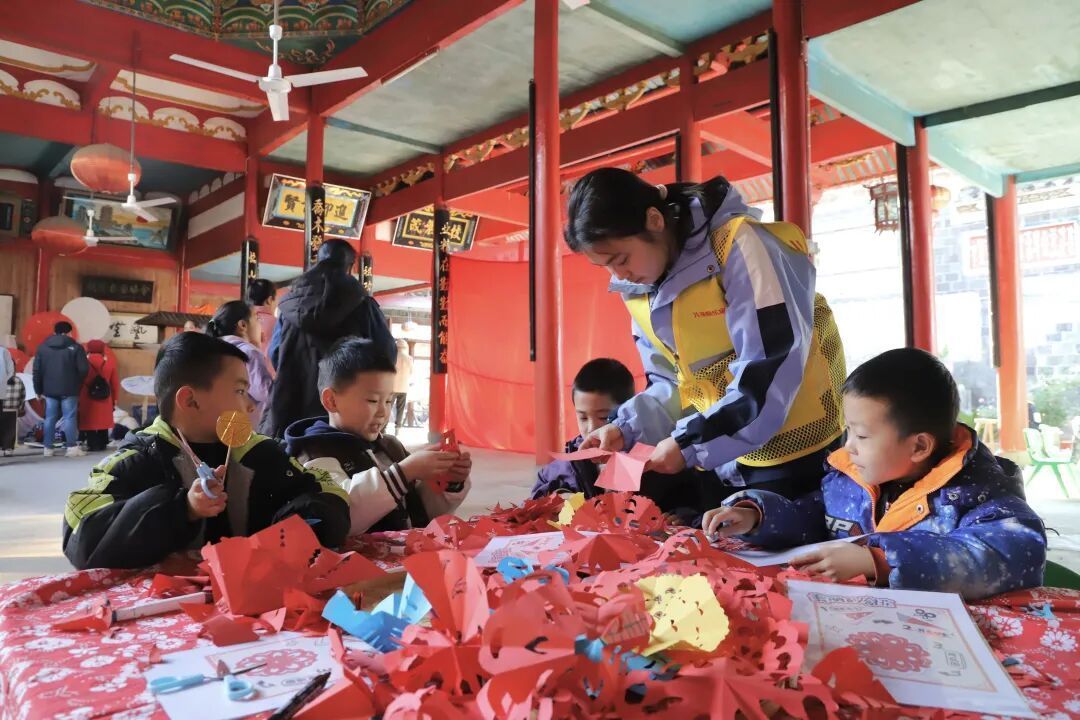 “古祠承新韵·非遗润童心”暨儿童快乐家园开园活动在福安穆阳镇石马兜东鲁支祠(仰止祠)举行。宁德文明网供图 非遗体验区欢声满堂。油纸伞绘制、线面制作、官埔油扇、剪纸、扎染等展台前,孩子们在传承人手把手的指导下沉浸体验,指尖流转的是技艺,心中萌发的是文化自信。 这场活动不仅让古祠焕发新生,成为传承与培育的双重载体,更通过“儿童快乐家园”这一实体空间,为当地孩子筑起了集学习、运动、交流于一体的成长港湾。