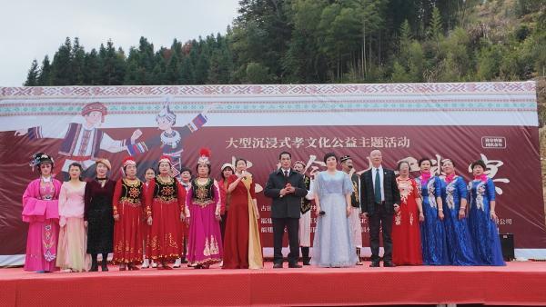 现场文艺表演。古田县融媒体中心 供图 祈福仪式上,福建省政协派驻新建村第一书记彭丰春表示,“长寿畲村千叟宴”是“中国村节”系列文化活动的重要组成部分,以“福门孝道”文化为核心,以“迎春纳福”为场景,依托畲族寿庆“全村同庆、唱颂祈福”的传统习俗,以“畲族十大碗”为文化载体,充分展现畲族药膳智慧与饮食文化。活动旨在凝聚乡情、弘扬畲族文化,号召各方参与孝老敬老,助力“旅居康养,长寿畲村”文化IP建设及乡村文旅融合。