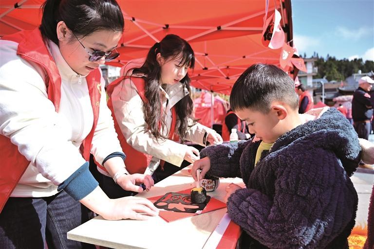 小朋友在拓印“福”字。 惠民服务暖人心。活动现场,主联办单位服务队环绕舞台设置服务展位,为群众提供政策宣讲、非遗展示、科学普及、医疗义诊、农技推广、法律咨询等服务,让优质资源直达基层。市委宣传部宣传服务队现场开展移风易俗宣传活动,让文明新风浸润乡村;市科技特派员服务队的专家现场为种植户解答花卉种植、病虫害防治等技术难题;市卫健委医疗义诊志愿服务队的医护人员现场义诊,为村民免费测量血压、血糖,仔细解答各类健康问题……一系列暖心惠民服务,为农村发展注入新活力,为农民生活增添更多幸福感。 文化科技卫生“三下乡”活动,是深入贯彻落实党中央乡村振兴战略的具体实践,是推动优质资源下沉基层、补齐乡村发展短板的民生工程。长期以来,我市坚持以人民为中心的发展思想,持续开展“三下乡”活动,不断丰富活动内涵,创新活动形式,努力将文化、科技、卫生的温暖传遍闽东大地、送到千家万户,取得了显著成效。据统计,在市委宣传部牵头下,全市87家主联办单位为纯池镇筹集总价值341.72万元的资金、物资、项目。 |