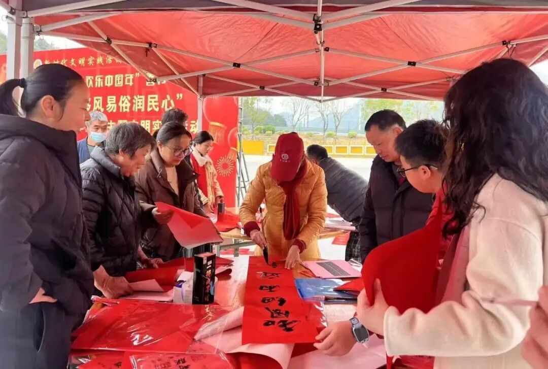 福安市湾坞镇“春联送福倡新风 移风易俗润民心”文明实践活动。 在福安市湾坞镇,“春联送福倡新风 移风易俗润民心”文明实践活动同样红火。书法家们将“扫黄打非”、移风易俗等内容融入春联,“扫黄打非清浊气,扬善弘文沐春风”等联句,让正能量伴着墨香飘进寻常百姓家。现场还普及了殡葬改革、防灾减灾等政策,引导群众树立健康生活理念。