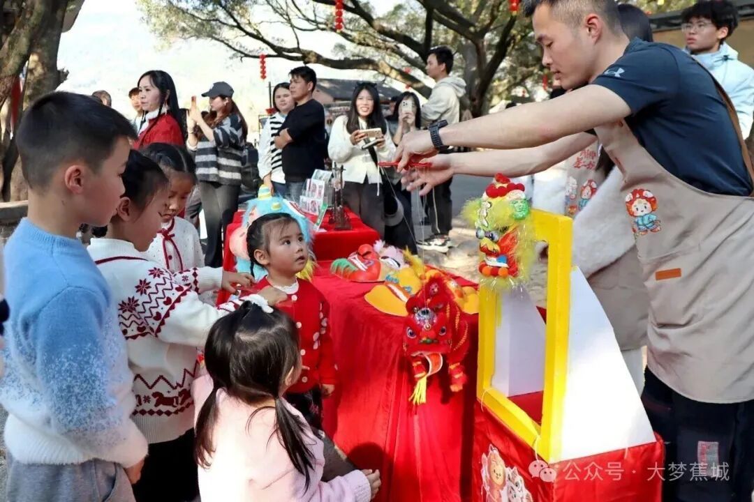 “狮情画意·骏马迎春”新春文艺汇演现场,小朋友们触摸线狮道具,了解非遗技艺的历史渊源。 走进蕉城区霍童镇,“狮情画意·骏马迎春”新春文艺汇演正在热闹上演。来自福建幼高专“狮师如意”实践队的队员们,向围拢的孩子们解说霍童线狮的奥秘。孩子们聚精会神,不时发出惊叹声,满脸都是藏不住的新奇与兴奋。霍童线狮非遗研习所里,游客们跃跃欲试,动手牵引丝线,体验让“雄狮”眨眼、跳跃的奇妙瞬间,古老技艺在互动中迸发出蓬勃生机。 屏南县新时代文明实践中心里,“春节有大戏 非遗过大年”正在进行。国家级非遗——屏南四平戏的演员们身着锦绣戏服,一腔一板、一颦一笑,将观众缓缓引入古老的戏曲世界。“四平戏又称‘庶民戏’,源自明代,传入屏南后由陈姓家族口传心授,至今已历四百余年、十六代传承不衰,是真正扎根闽东的文化瑰宝。”龙潭四平戏剧团团长介绍道。戏韵悠长里,人们品出的是浓浓的年味,更是深深的乡愁。