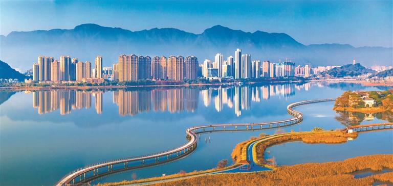 湖光城影两相宜,栈道蜿蜒入画来。王志凌 摄 “要切实把宁德的城市规划好、建设好、管理好,不辜负大自然的馈赠,不辜负闽东人民的期盼。”“要巩固良好态势,齐心协力奋斗,努力把现代海湾城市建设得更好。”“要以建设现代海湾城市为核心,聚焦城市能级、临港产业、海洋经济,加快打造‘环湾一体、联动发展’的海湾经济发展新样板。”……去年以来,市委主要领导接连作出部署、提出要求,为建设现代海湾城市明确思路,为推进阶段性工作坚定信心、划出重点。 有部署、见行动。2025年7月,宁德市现代海湾城市建设指挥部正式成立,采取“指挥部+行业主管+国企+智库”运行模式,构建起上下联动、左右协同、高效运转的工作体系。指挥部成立以来,集中力量攻坚克难,化解了一批在立项审批、土地报批、资金筹集等方面的堵点难点,为海湾城市建设提供了坚实组织保障。 立足山海禀赋与产业基础,我市推动城市功能与空间布局优化升级。当前,《三都澳海湾城市发展战略规划》已完成初稿编制,邀请知名专家学者咨询论证,高质量推进海湾城市发展;按照“老城换新,东湖提质,北部升级,天湖强核”的目标,积极构建主城区“一脊七叶”城市空间格局;宁德港货物吞吐量成功突破1亿吨,正式迈入“亿吨大港”行列,现代港口集疏运体系建设迈入新阶段;开展“天湖新城”规划国际竞赛,调整优化区域规划设计;高铁站片区、金贵片区城市设计加速深化,财校干校、福洋等重点片区低效用地开发有序推进,让每一寸土地释放最大价值……科学的规划体系,为城市发展绘制了清晰的“路线图”和“施工图”。 项目建设强支撑 城市更新加速度 项目是城市发展的“生命线”,更是海湾城市建设的“硬支撑”。 从蓝图到实景,需要一个个具体项目的落地生根。2025年,宁德计划实施城市建设项目186个,目前,已完工30个,在建105个。温福高铁、G228滨海大通道、湖库连通、金垂基地、五里洋园区、贵岐山污水处理厂扩建等重点项目如期动工;环东湖景观提升、万达宝信天桥、金溪景观桥、兰溪公园、闽东路白改黑、口袋公园、排水易涝点整治等一批群众可感可及的民生项目建成投用,让市民实实在在感受到城市发展的变化。 产业配套项目建设蹄疾步稳。推动宁德时代全球运营中心、青拓不锈钢小镇等主导产业总部落地,宁德时代母工厂、21C创新研发与试验中试基地、钛合金新材料产业园、电动船舶产业园等11个新兴产业项目助力四大主导产业与城市发展深度融合。 交通基础设施建设全面提速。车里湾互通、宁武高速(宁德至古田段)、宁上高速(霞浦至福安段)建成通车;G228大通道宁德境内15个项目已有14个动工;温福高铁全面动工;推动现代港口集疏运体系形成,筹建支线运输机场……内联外通的立体交通网络加速成型,现代化综合交通体系建设迈出坚实步伐。 生态环境治理项目持续发力。三都澳水质提升工程成效显著、宁德东区污水处理厂和福安柳堤污水处理厂扩建工程建成投用、环湾沿岸新建污水管网174公里、中心城区湖库连通水资源优化配置工程8个支洞全面开工……碧水蓝天,正成为宁德海湾城市的鲜明特征。 增进福祉绘底色 宜居宜业暖民心 人民城市人民建,人民城市为人民。宁德市始终坚持以人民为中心的发展思想,把民生福祉作为城市建设的出发点和落脚点,聚焦群众急难愁盼,实施一批民生微项目、暖心工程,让城市发展更有温度,让市民生活更加充实、更有保障、更可持续。
