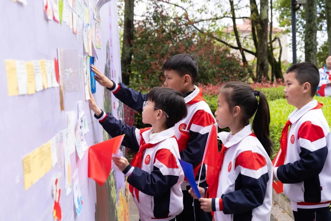 活动现场,庄严肃穆。雄壮的旋律中,出旗仪式有序开展,全体少先队员行队礼、齐唱《我们是共产主义接班人》,面向队旗高举右拳重温入队誓词,铿锵誓言回荡陵园上空。随后,全体人员肃立默哀、深深鞠躬,并为烈士纪念碑整理缎带、敬献鲜花,擦拭烈士英名墙、张贴寄语卡片。