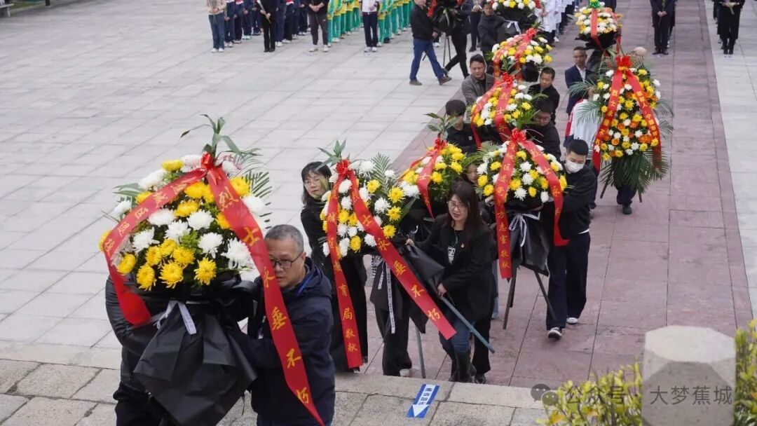 伴随着深情的《献花曲》,参与活动的人员稳稳抬起花篮,缓步走向烈士纪念碑。花篮缎带上“革命烈士永垂不朽”的金色大字熠熠生辉。随后,全体人员神情庄重,依次瞻仰烈士纪念碑,缓步绕行一周,并将手中的鲜花轻轻放在纪念碑基座前,追思先烈们不畏牺牲、艰苦奋斗的革命精神。