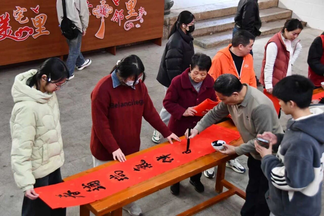 从腊八节的公益写春联到日常的民俗体验,陈氏宗祠让传统文化在互动中焕发活力。1月26日,第六届“公益书写春联”活动在此举办,12名福安市书画协会书法家现场挥毫,历时3小时创作春联800余副、“福”字500余个,为200余户村民送上兼具文化韵味与节日暖意的厚礼。作为常态化的公益活动,书写春联已累计服务村民超2000户,红纸笔墨间流淌着对新春的期盼,更延续着中华优秀传统文化的生命力。此外,宗祠依托其“赛岐暴动”指挥所的红色历史,打造“红色+传统文化”研学线路,年均接待赛岐中小学生研学团队6批次、覆盖师生300余人,让青少年在触摸古建筑、聆听革命故事中,感受历史温度、传承文化根脉。 文明新风进祠堂: 破立并举,引领乡村善治 陈氏宗祠以移风易俗为抓手,让文明新风扎根乡村土壤。通过设立移风易俗宣传角、张贴村规民约、发放500余份文明祭扫倡议书等形式,引导村民摒弃大操大办、炫富攀比等不良风气,推动村内婚丧嫁娶支出平均减少30%,树立“厚养薄葬、婚丧俭办”的新风尚。同时,宗祠整合资源开展年均6场爱心义剪、覆盖老年人200余人次,组织40余名“小小创城志愿者”深入村居开展12次环境清扫与300余份问卷调查,让文明实践融入生活细节,使古祠成为引领乡村善治的“文明阵地”。 实践活动进祠堂: 知行合一,服务民生需求