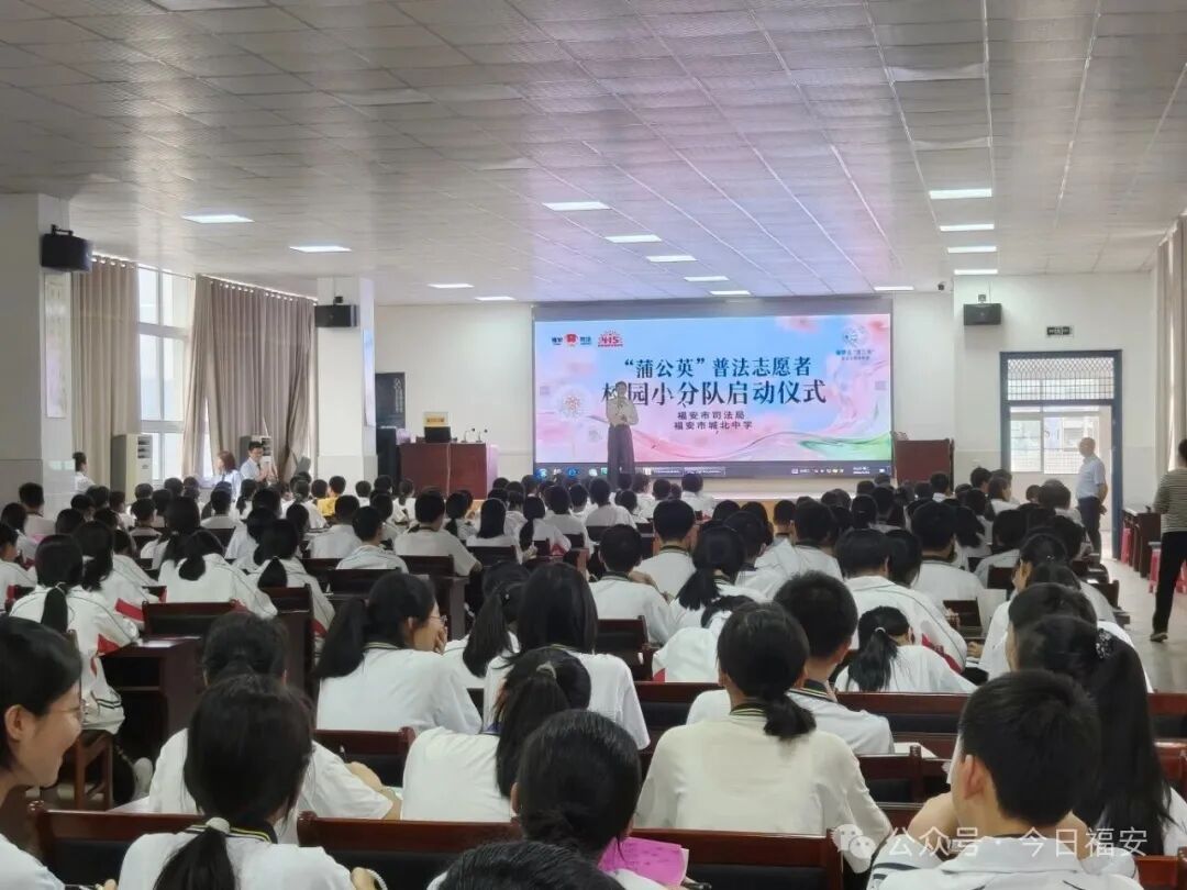 宁德文明网4月16日讯(通讯员 秦红丽)4月15日,福安市司法局联合城北中学开展“法治宣传进校园”活动,以“国家安全心中记,法治校园共守护”为主题,通过互动体验、现场咨询等多种形式,为400余名师生带来一堂生动的法治教育课。 活动伊始,现场宣读“蒲公英”普法志愿者校园小分队首批成员名单,并为小分队队长授旗。学生志愿者代表在发言中表示,将主动担当,严守纪律,并以“蒲公英”之资播撒法治种子,为建设平安法治校园贡献力量。